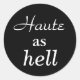 This super cute, HAUTE AS HELL, sticker makes a great decoration for a present, gift or envelope. It is also perfect for decorating an appetizer, dessert or food favor. Attach two of these stickers to a toothpick and use to decorate hors d'oeuvres.