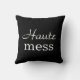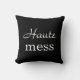 This black and white pillow is decorated with the cute saying, Haute Mess on the front and back, making it perfect for a bedroom, sitting room or living room.