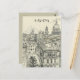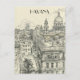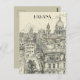 This travel postcard, in hand drawn sketch-style, showcases a sketch of the cityscape of Havana, Cuba.