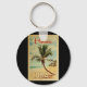 A uniquely retro mid-century modern Havana Cuba art print in vintage travel poster style. It features a curved palm tree on sandy beach with ocean under a blue cloudy sky.