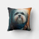 Havanese dog on bike digital painting throw pillow