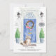 Announce your new address with our stylish announcement featuring a Havanese, blue front door, welcome mat, slate sign, topiaries and a floral wreath set on a gray brick background.