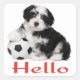 Aww...who can resist the cute face of a Havanese puppy dog? This cute canine sticker features an image of a black and white Havanese puppy playing with her soccer ball highlighted against a crisp white background.