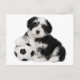 Aww...Who can you resist the sweet face of a Havanese puppy dog? This cute canine postcard features an image of a black and white Havanese puppy playing with a soccer ball highlighted against a crisp white background. This sweet pup is ready to help you let friends and family know you are thinking of them.
