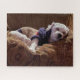 This puzzle was adorable. It was given to an adult who loves Great Pyrenees. It wasn't a quick puzzle to assemble because of all the white, but he had fun doing it. The quality of this puzzle was excellent.