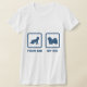 The material is a great quality that is hard to find with most tee shirts. Fabric was not see-through or thin at all, but was also very soft and comfortable. The shirt description states that it runs a little small, so I sized up one size for a perfect fit! I would definitely buy this type of tee shirt again because I love the fit and high quality fabric that I cannot find anywhere else. The printing was perfect and just as pictured. Loved the cute quote and really enjoy the tee in both the quality and design. I love quirky typography designs and funny quotes and I am extremely pleased with the overall quality and value I get at Zazzle!