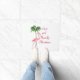 holiday design will keep you in a tropical mood. Gorgeous pink flamingo wearing a Santa Claus hat with a Christmas decorated palm tree.