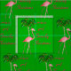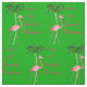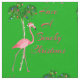 holiday design will keep you in a tropical mood. Gorgeous pink flamingo wearing a Santa Claus hat with a Christmas decorated palm tree.