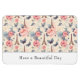 A flexible magnet with the saying "Have a beautiful Day". Designed with an elegant pattern. Pink roses, blue-gray butterflies and an Eiffel tower. A French themed pattern.