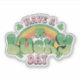 Contour sticker with a St. Patrick's Day themed image. A retro grunge style design which says: Have a lucky day. With a colorful rainbow behind. Words written in a fat rounded retro style vibe. Pink and green colors.