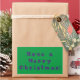 Just a sticker letting someone know you want them to Have a Merry Christmas! in purple lettering on a bright green background.