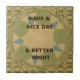 "HAVE A NICE DAY" and "& BETTER NIGHT": These phrases serve as the central message, delivering positive wishes that resonate with viewers.