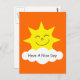 Pretty orange Have A Nice Day postcard with happy smiling cartoon sun coming out from behind a cloud. Text & background colour are customizable – loads of colors and fonts to choose from. Please visit my Molly Sky Designs store for lots more fun, cute & retro designs for both family and business. A wide range of products available: mugs; travel mugs; key chains; sneakers; stamps; T-shirts; ties; skateboards; magnets; greeting cards; postcards; mouse pads; aprons; ties; dog clothing; bags; buttons/badges; stickers; caps; wedding related products; children & baby clothes; hanging ornaments; pins/brooches; bookmarks (in bulk); posters, canvas art prints & binders.