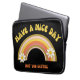 A pro-choice laptop sleeve with a retro snarky style! Rainbow, daisies and text in 70s retro color palette. Text: Have a nice day. Not you SCOTUS.