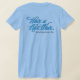 My overall review is that the T-shirt is nice, it fits true to size however the font is significantly smaller than advertised and you can't read it. The printing is unreadable and there is a strain to read it. It does not look like the advertised product. Maybe the shirt color is darker or a larger more visible font should have been used. Photos with and without flash and font is barely legible.