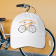 This hat is perfect for cyclists or anyone who loves riding bikes. The white hat features an illustration of a bicycle in orange with orange text above that reads "Have a Wheely Good Day."