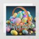 This unique Happy Easter greeting card features a colorful basket overflowing with eggs and sweet treats. Please feel free to adjust the text to make this card personal and one of a kind.