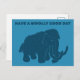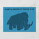 Send some cheer with this postcard that features a cute cartoon style illustration of a woolly mammoth in dark blue set against a lighter blue background with the fun play on words message "HAVE A WOOLLY GOOD DAY" above.