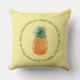 The front of this pillow features a pineapple in the center with green text, in a circle, that reads "Have An Aloha Day!" On the back side, warm yellow and white bold stripes with a thin, green pinstripe. A fun contrast that makes this pillow perfect for indoor or outdoor use.