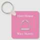"Have Horse Will Travel" Stirrup Iron on Pink Keychain