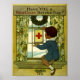 A World War I poster showing a boy putting Red Cross service emblem on window. Created by Jessie Willcox Smith.