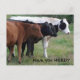 This color photograph shows four different cows (three breeds) in a range of colors, grazing together on a field. Have you HERD? makes this a great way to make an announcement, change your address, or extend an invitation. The perfect rural country cattle farmer type gift! Red Angus brown cow, two black angus cows, and a holstein.