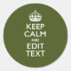 Have Your Text Keep Calm And on Olive Green Classic Round Sticker