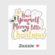 Have Yourself a Merry little Christmas in a decorative cursive script font in deep red and gold. Embellished with a star, snowflakes, holly and a sprig of evergreen needles.