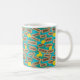 Fun mug featuring a bold pattern of Hawaiian beach names on signposts. Along with yellow Hibiscus flowers and palm leaves. On a bright blue background. Ideal for Hawaiians, for anybody who loves Hawaii, Hawaiian beach wedding, surfers...everyone!