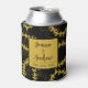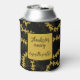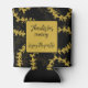 Modern Hawaiian beach wedding black and gold coloured can coolers. They are patterned all over with a stylish hand drawn plumeria flower lei pattern. On the front you can add the bride and groom's names, and add the wedding date underneath. On reverse is a Thank You message which is totally customisable, so you can change to another slogan if you prefer. They are perfect for Hawaiian island beach weddings and Luau parties