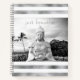 “Just breathe.” Every time I visit the Big Island, I need to go to this Buddha. Something about the splendor of the ocean, the peaceful face, and the solitude of its placement makes me feel calm, serene, and happy. Take a moment to relax whenever you use this custom spiral notebook of a beautiful, inspirational black and white buddha photo, against a background of simulated silver foil and white stripes. Makes a great inspirational gift for a special friend, as well as yourself!