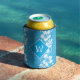 Fun luau party can cooler with a blue and white Hawaiian shirt floral pattern, and a monogram diamond on the front to add your own initial
