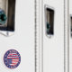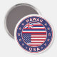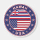 Badge of Hawaii with flag of Hawaii and flag of USA colors, rounded shape.