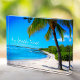 “On beach time.” Rewind back to memories of lazy, tropical beach days whenever you gaze at this Hawaii vacation photo block of a lone palm tree on a sandy, crescent beach, with clear turquoise blue skies and water. The acrylic photo block gives this artwork a 3D richness. Great for any room in your house!