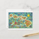 It shows all the islands with pictures. There are planes, ships, the sun and people. It was dedicated to the public domain.