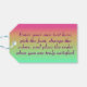 The quality and weight of the paper used was excellent. I love the feminine floral design. I gave received so many compliments on the unique cut of the tag. I also use these tags as a business card. This is my 3rd time ordering this design. I love it! I was very pleased with the printing. I was excited that I was able to print separate messages on both sides of the tag. Very clean look.