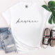 My overall review is that the T-shirt is nice, it fits true to size however the font is significantly smaller than advertised and you can't read it. The printing is unreadable and there is a strain to read it. It does not look like the advertised product. Maybe the shirt color is darker or a larger more visible font should have been used. Photos with and without flash and font is barely legible.