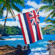 Hawaii State Flag has eight alternating horizontal white, red, and blue stripes, with the United Kingdom's Union Flag in the top corner. The flag ratio is 4:7. The design has been adjusted to fit the product. The Hawaiian Islands are an archipelago of eight major islands, several atolls, numerous smaller islets, and undersea sea mounts in the North Pacific Ocean, extending some 1,500 miles from the island of Hawaii in the south to northernmost Kure Atoll.