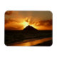 Rectangular souvenir photo magnet with a warm orange sunrise over Mokulua island at Lanikai Beach, Oaha, Hawaii, USA.
