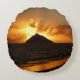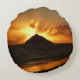 Round throw pillow with a warm orange sunrise over Mokulua island at Lanikai Beach, Oaha, Hawaii, USA.