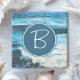 Hawaii Turquoise Blue Ocean Waves Monogram Initial Stone Coaster
