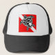 Hawaii turtle and Hawaii islands on a dive flag. Turtles are called Honu in Hawaiian language. There are many dive sites on Oahu island. Hanauma Bay is a popular dive site.