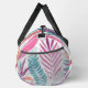 I actually had been searching other sites for a duffle gym bag and I couldn't find any. This one is just what I was looking for with all the features. The inside zip pocket, the outside mesh pocket and LOTS of room inside. Love the printing. Really like how the floral print turned out.