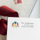 Tropical chic holiday return address labels feature a Christmas pineapple illustration flanked by holiday greenery, holly leaves and red poinsettia flowers. Personalize with your return address aligned at the right in chic off-black lettering.