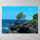 A lone tree hangs over the crashing washes along the Hawaiian coast.