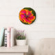 Hawaiian Fuchsia and Orange Hibiscus from Kauai Large Clock