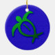 Hawaiian Honu Petroglyph on Blue Ceramic Ornament