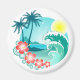 A beautiful Hawaiian Island Design featuring coconut trees, tsunami-style waves, hibiscus flowers, seabirds, sun, and an island in the background. Search for Makanahele to see my other designs.
