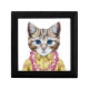 This design features a portrait of cat in a summer shirt and Hawaiian lei.