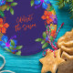 Tropical themed, hibiscus and holly paper plates for luau themed seasonal parties. Dark purple with bright orange, blue and yellow flowers. Green holly leaves with red berries are part of the design. Add any wording to the center in orange script. Sample wording is, "Celebrate the Season", but could also say, "Merry Christmas", "Happy Holidays", or a more personal message for an office party.